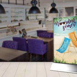 Bij lekker in vorm mochten we voor deze zonnige campagne diverse items fotograferen, schrijven en natuurlijk vormgeven. Eerst met een artikel in de Retina en vervolgens voor de kracht van herhaling via direct mail en huis-aan-huis flyers. Ook in de winkel en online zorgden we voor diverse actiemedia, waaronder een forex brillendisplay om het beschikbare assortiment feestelijk te tonen.