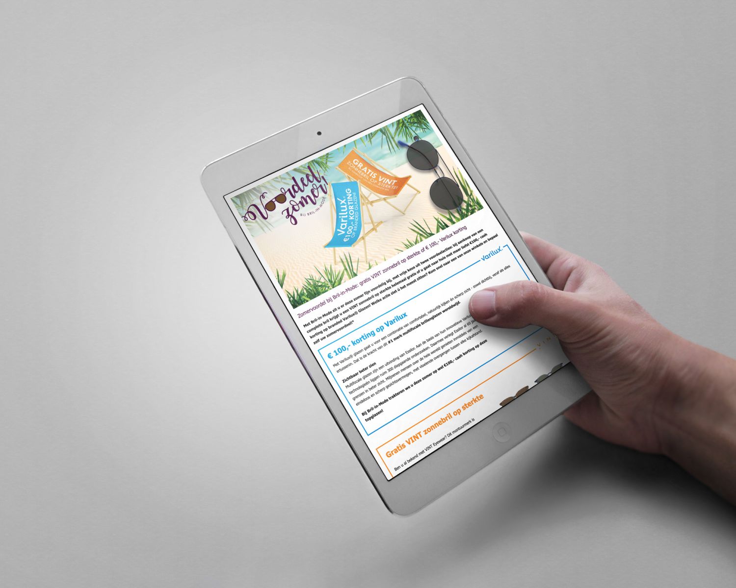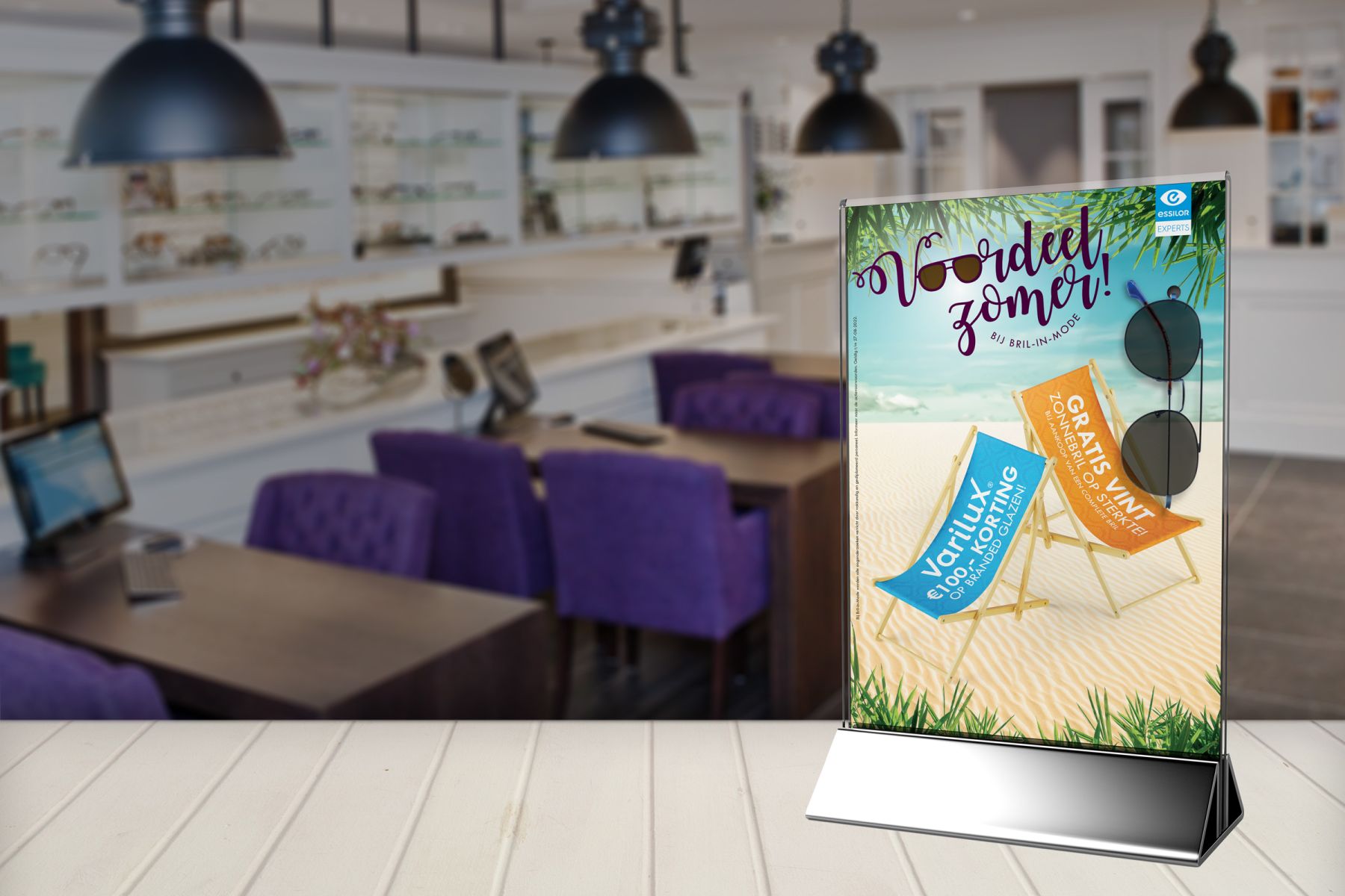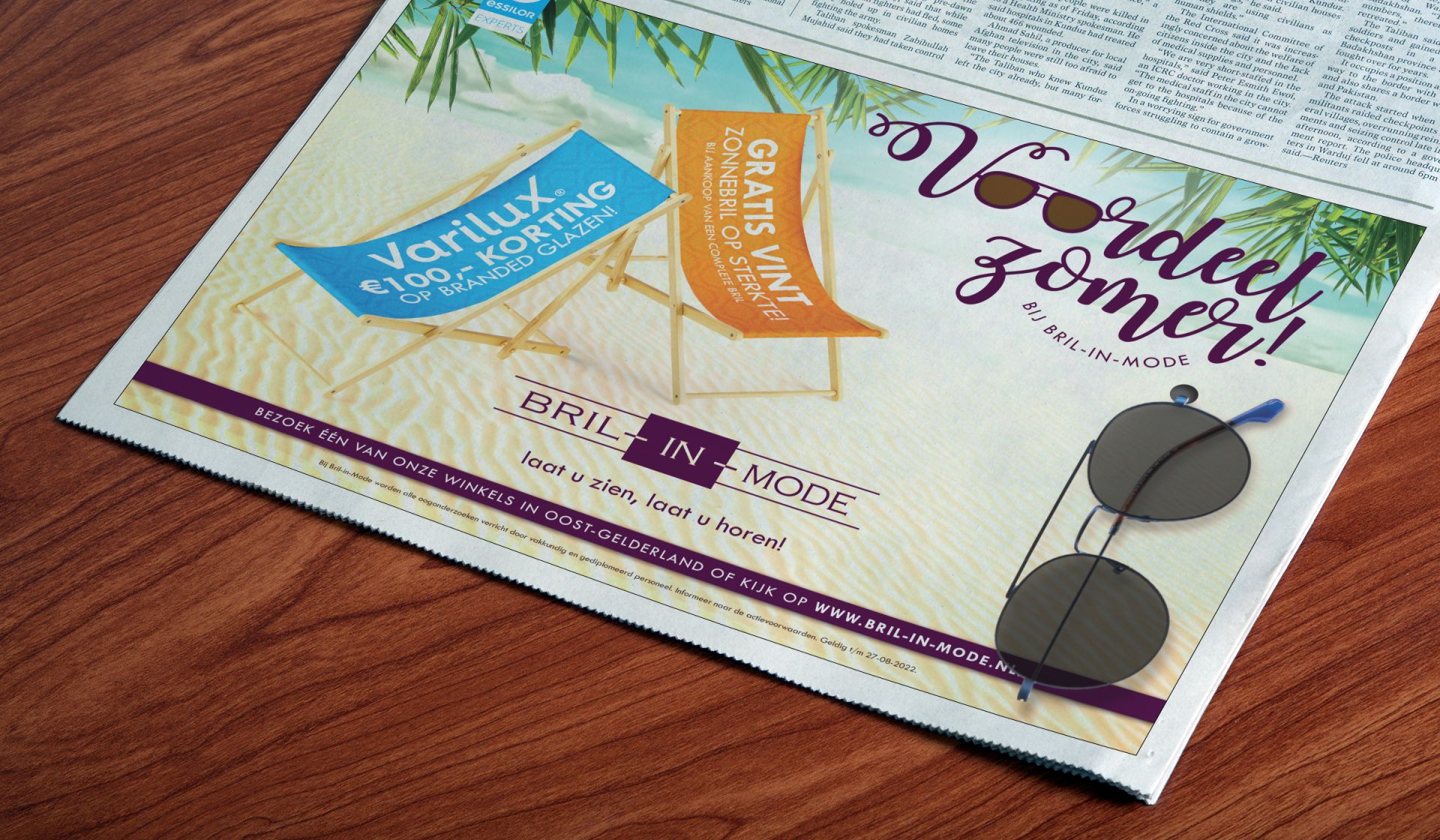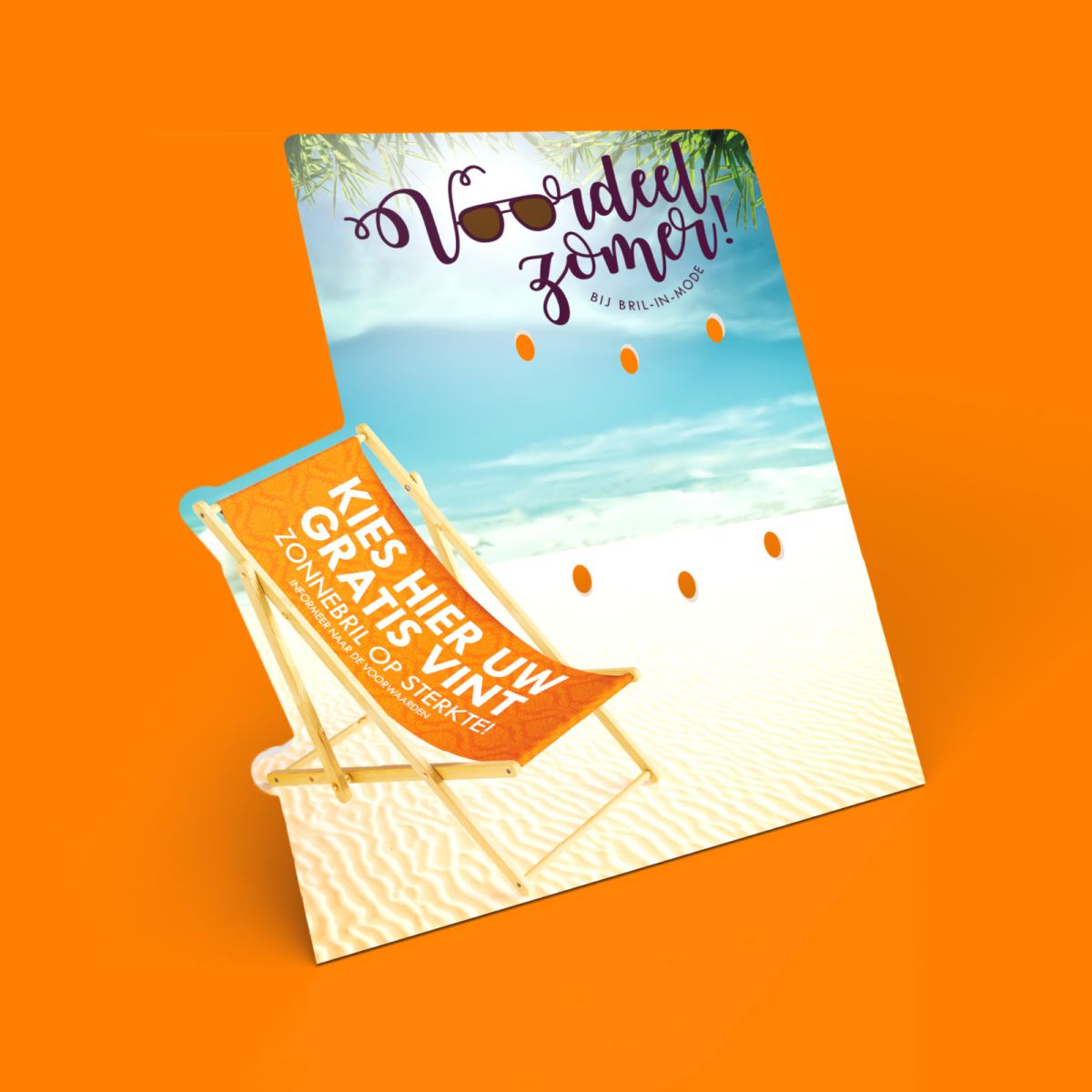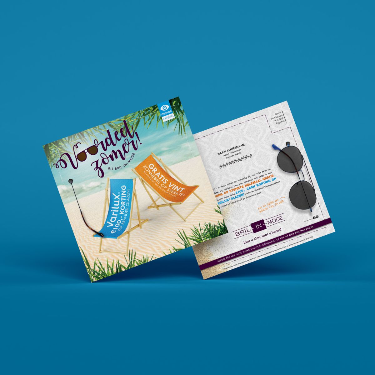 Bij lekker in vorm mochten we voor deze zonnige campagne diverse items fotograferen, schrijven en natuurlijk vormgeven. Eerst met een artikel in de Retina en vervolgens voor de kracht van herhaling via direct mail en huis-aan-huis flyers. Ook in de winkel en online zorgden we voor diverse actiemedia, waaronder een forex brillendisplay om het beschikbare assortiment feestelijk te tonen.