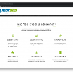Websites coderen kan Patrick Morpey van MorPHP als geen ander, maar over de vormgeving en branding van zijn website mochten we bij lekker in vorm creatief meedenken. Samen hebben we een aangekocht 1-page template qua functionaliteit en uitstraling omgetoverd tot een sterk online merkverhaal. Met een custom made contactmodule, bondige teksten, passende fotografie en kloppende huisstijlkleuren.
