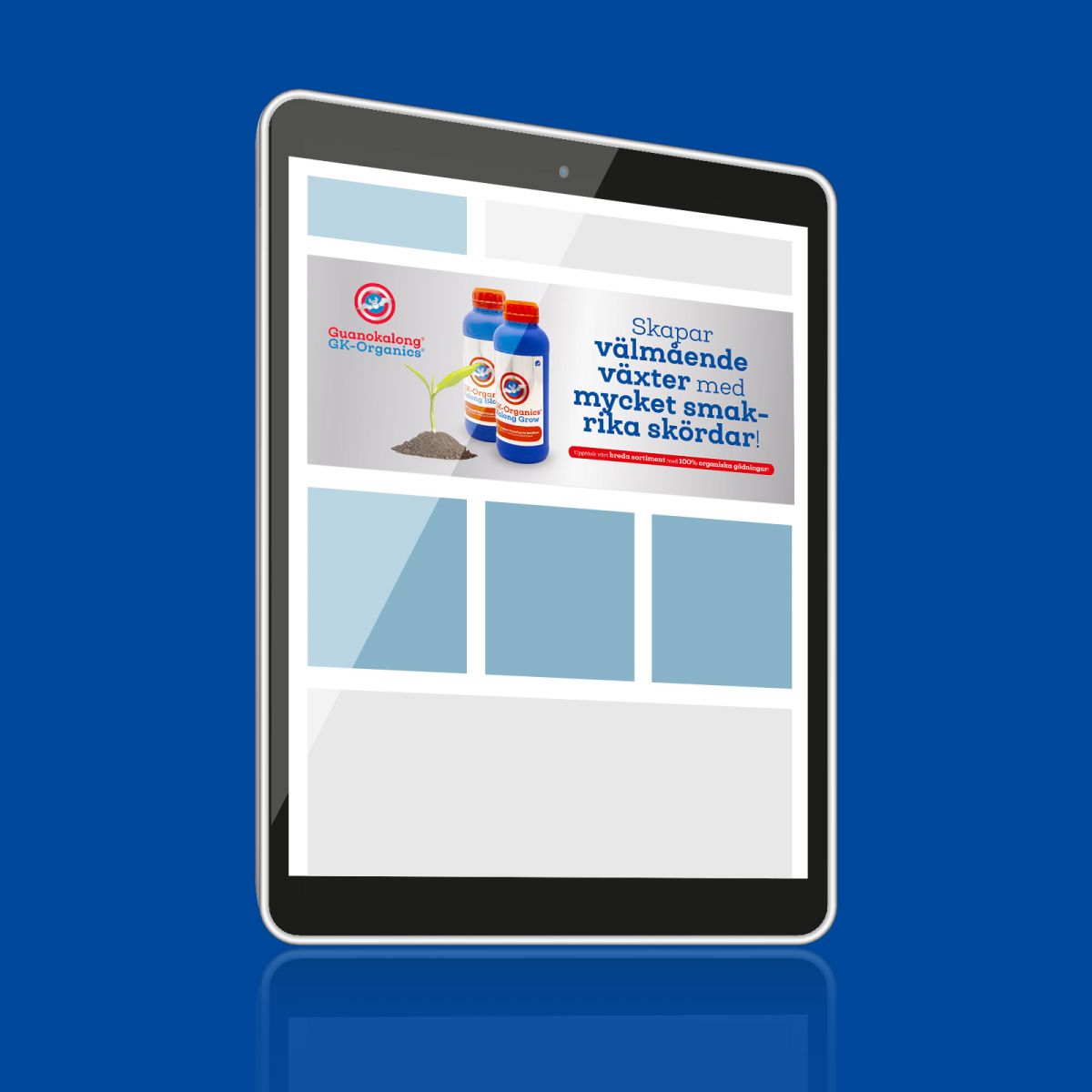 Voor internationale wederverkopers van Guanokalong en GK-Organics mochten we bij lekker in vorm een set banners ontwerpen om de droge en vloeibare productlijnen uit te lichten op hun websites. De banners zijn eerst in het Engels ontwikkeld en daarna ook doorvertaald naar het Zweeds.
