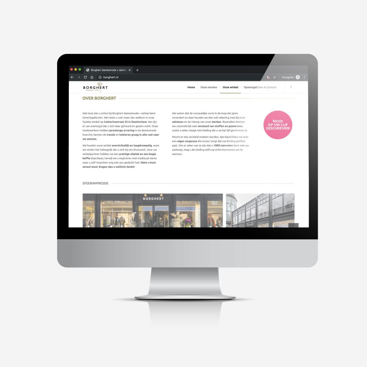 Op basis van een zogenaamd supertheme hebben we bij lekker in vorm een prachtige one-page website mogen realiseren voor Borghert damesmode + advies. Doordat we eerst het merkverhaal van de damesmodewinkel in kaart hebben gebracht, was de website uitstekend te vullen met de juiste elementen. Vanzelfsprekend is de website responsive en helemaal conform de uitgezette huisstijl.
