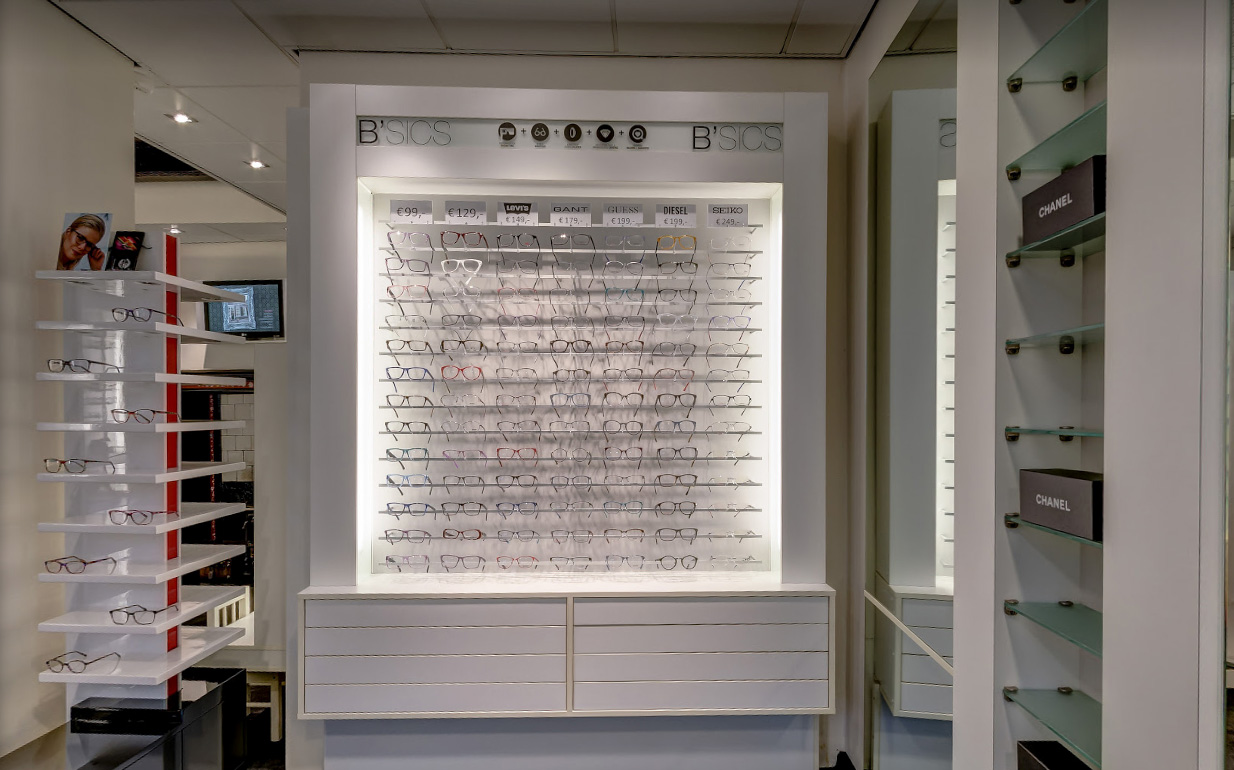 Om bezoekers van Bril-in-Mode direct duidelijk te maken welke monturen tot de nieuwe B’SICS SELECTIE behoren, mocht lekker in vorm het ontwerp van panels boven de displays verzorgen in diverse uitvoeringen voor de 7 winkels. Ook de overige monturen werden voorzien van fraaie, nieuwe logopanels.