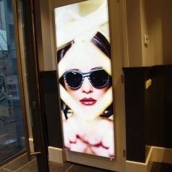 Eindelijk is het dan zover: de nieuwe vestiging van Bril-in-Mode Ulft is geopend! En deze ziet er prachtig uit. lekker in vorm mocht diverse elementen ervan vormgeven, waaronder een RVS-logo, raambelettering, LED-visuals op doek en diverse glass etch logo- & prijspanels. Mooi uitgevoerd door Sjaak Hamstra Interieurs.