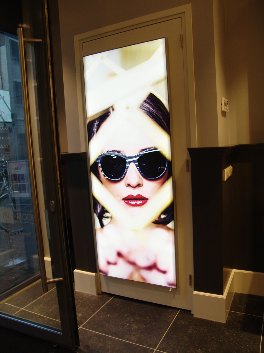 Eindelijk is het dan zover: de nieuwe vestiging van Bril-in-Mode Ulft is geopend! En deze ziet er prachtig uit. lekker in vorm mocht diverse elementen ervan vormgeven, waaronder een RVS-logo, raambelettering, LED-visuals op doek en diverse glass etch logo- & prijspanels. Mooi uitgevoerd door Sjaak Hamstra Interieurs.