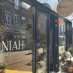 NIAH Living & Workshops is tegenwoordig te vinden in een fysieke winkel op Boliestraat 29 in Doetinchem. Dat mag aan de buitenkant natuurlijk duidelijk gezien worden. Bij lekker in vorm mochten we daarom het bestaande logo laten uitvoeren in hoogwaardige contourgesneden witte raamfolie.