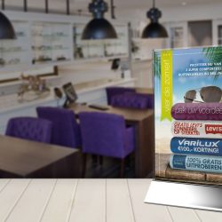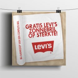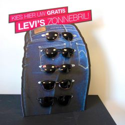 Speciaal voor het etaleren van het assortiment Levi’s zonnebrillen waaruit gekozen kan worden, ontwierpen we een contourgesneden toonbank display.